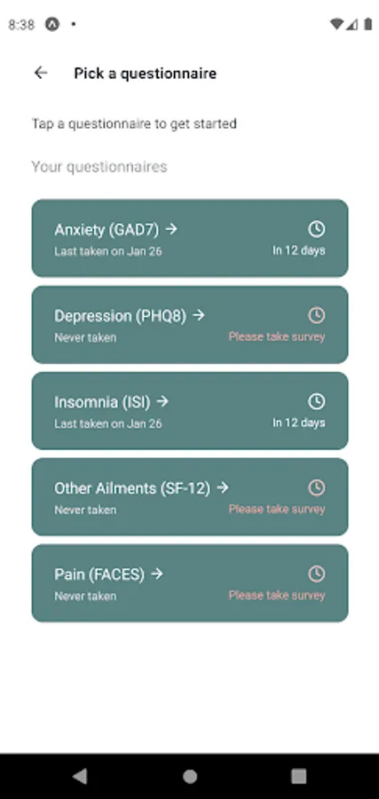 Every 2 weeks, answer a few questions about how you are doing. These clinically validated surveys are the gold standard used by clinicians to gather powerful information about your mental health and wellbeing.