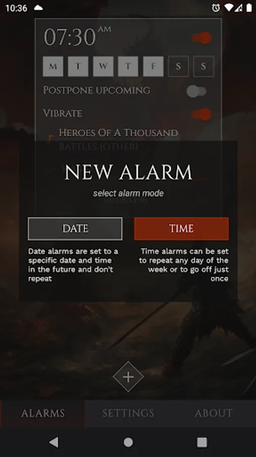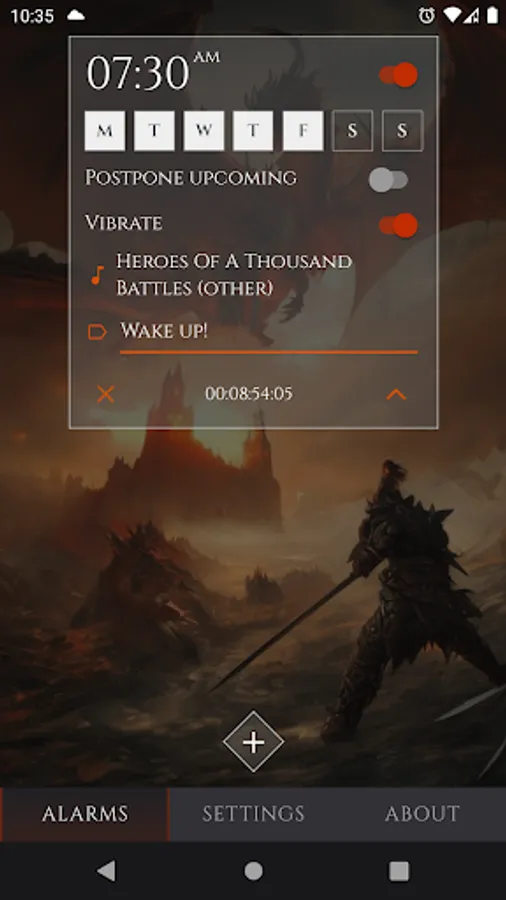 -Set a one-time or repeating alarm for any day of the week.