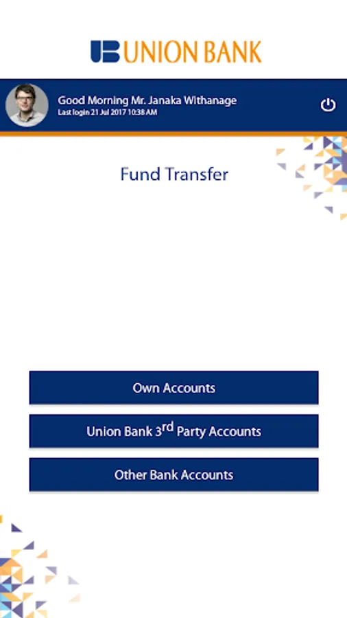 • Fund Transfers to Own accounts (FoC), 3rd Party Accounts of Union Bank (FoC) and Other Bank accounts.