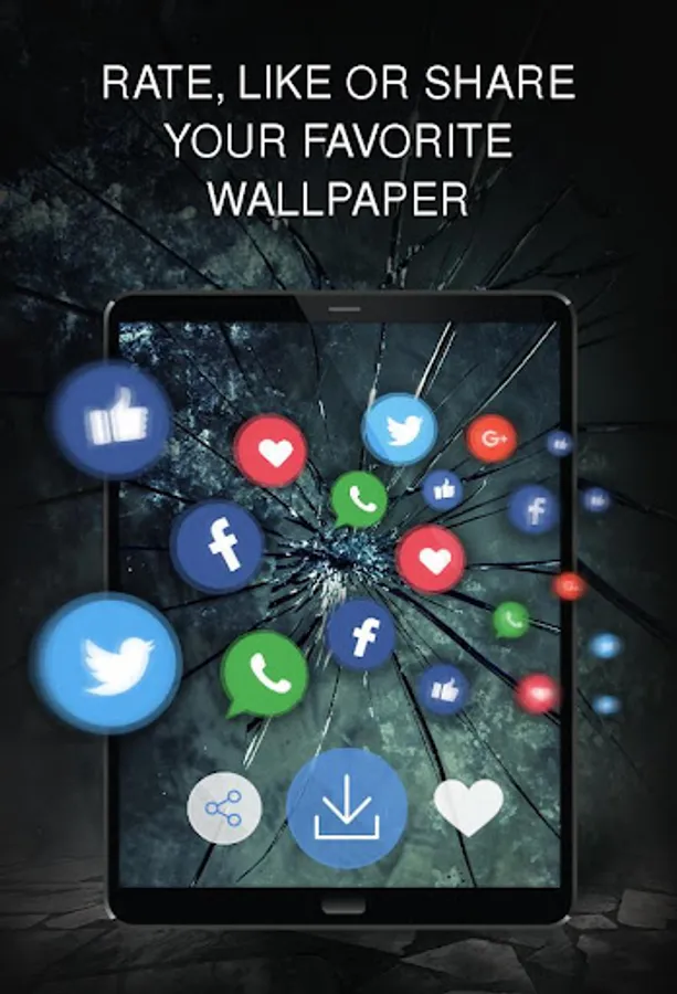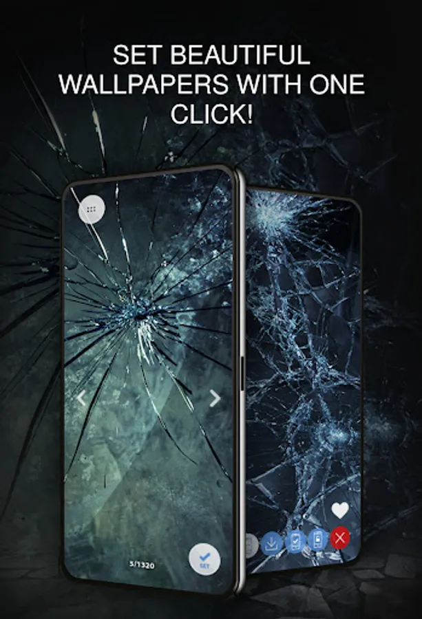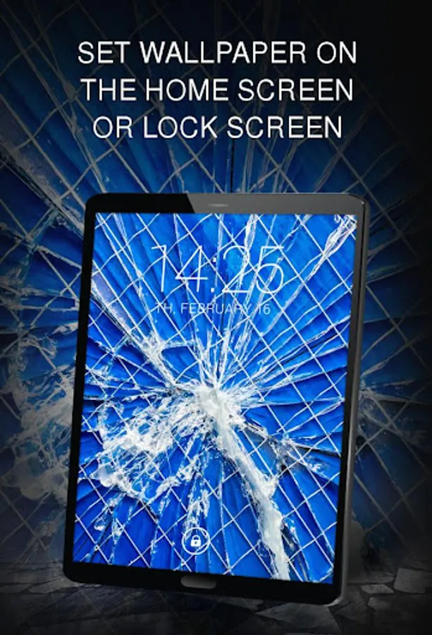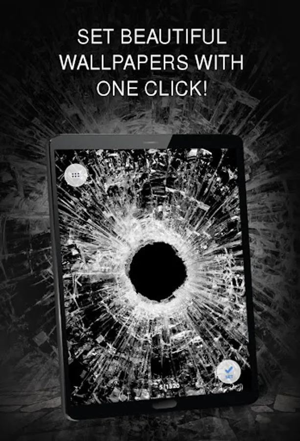 One step will allow you to create a stylish image with a broken screen on the screen of a smartphone, tablet or set a screen lock with a damaged screen on the same devices. Find your favorite wallpaper, click "Set on screen" and the application will do everything for you! Our system of automatic matching wallpaper to the phone. The application will recognize and automatically adjust the wallpaper image to the screen resolution.