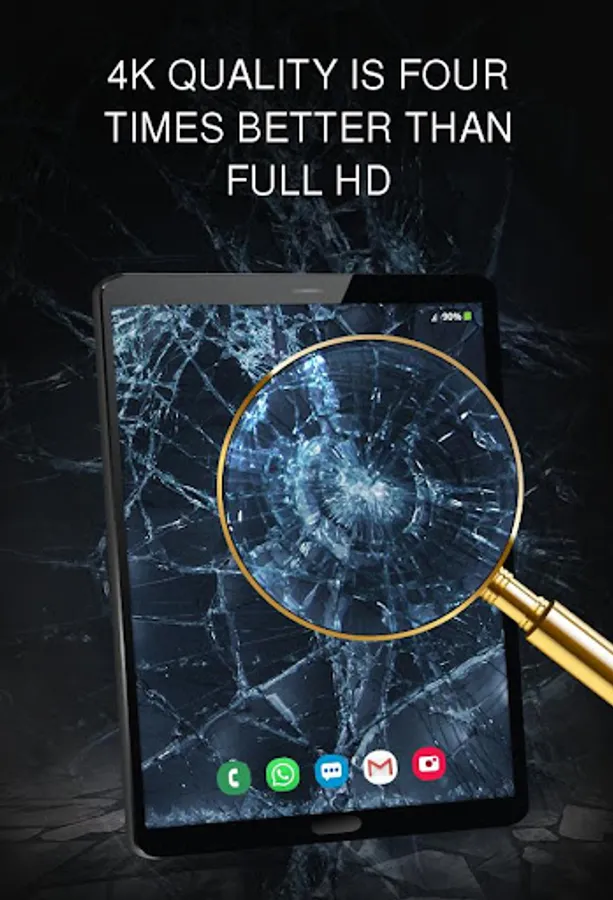 In addition, the application sends users notifications about the availability of new wallpapers so that they can view the next great wallpapers and set photos of the broken screen on the screen that they like the most. Notifications are also a guarantee that no one will overlook the database update and available messages. The background with a damaged phone screen can be customized on the smartphone's lock screen, changed and adapted to your own taste.