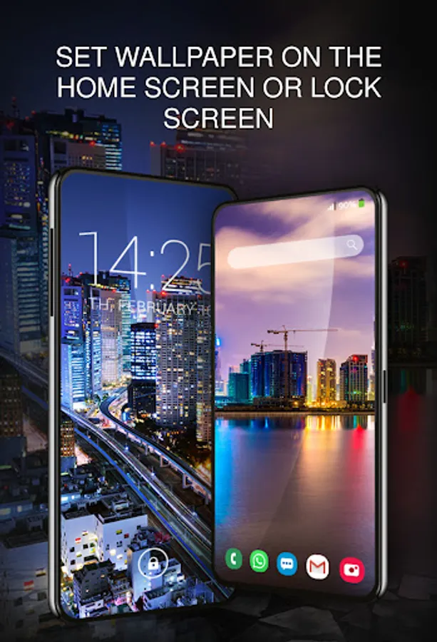 In addition, the application sends users notifications about the availability of new wallpapers so that they can view the next great wallpapers and set cities at night with photos on the screen that they like best. Notifications are also a guarantee that nobody will miss the database update and available messages. The night city background can be customized on the smartphone's lock screen, changed and customized.