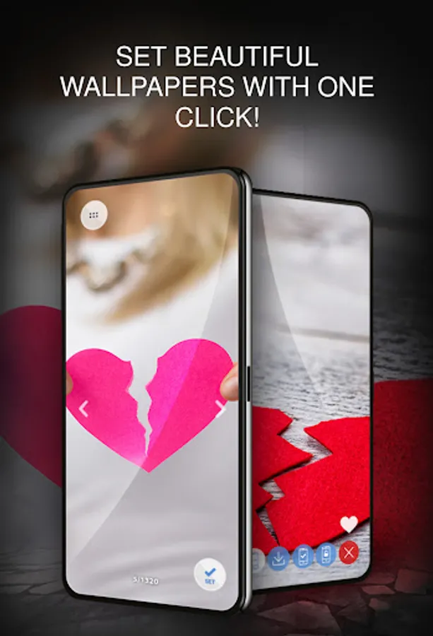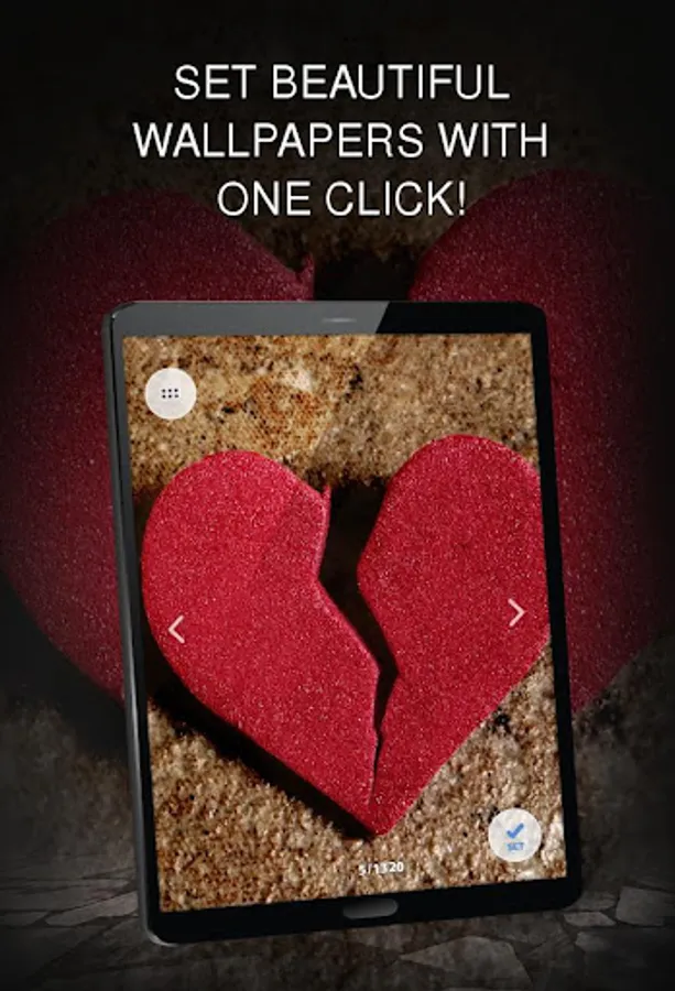 One step will allow you to create a stylish image with a broken heart on the screen of your smartphone, tablet or set a screen lock with a broken heart on the same devices. Find your favorite wallpaper, click "Set on screen" and the application will do everything for you! Our system of automatic matching wallpaper to the phone. The application will recognize and automatically adjust the wallpaper image to the screen resolution.