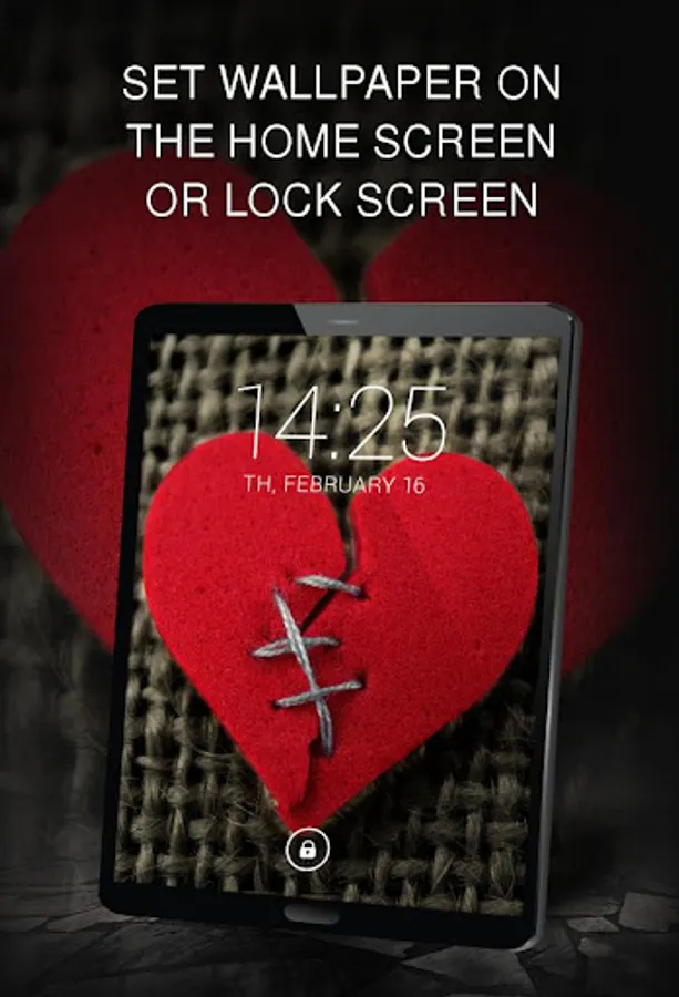 In addition, the application sends users notifications about the availability of new wallpapers so that they can view the next great wallpapers and set broken heart photos on the screen that they like the most. Notifications are also a guarantee that nobody will miss the database update and available messages. The broken heart background can be customized on the smartphone's lock screen, changed and adapted to your own taste.