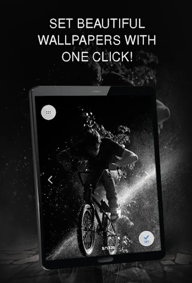 One step will allow you to create a stylish image with a bike on the screen of a smartphone, tablet or set a screen lock with a bike on the same devices. Find your favorite wallpaper, click "Set on screen" and the application will do everything for you! Our system of automatic matching wallpaper to the phone. The application will recognize and automatically adjust the wallpaper image to the screen resolution.