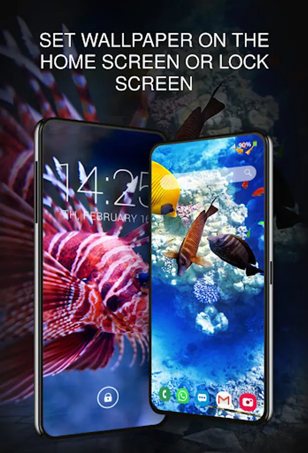 Application containing wallpaper with fish on the phone and screen lock created for Android smartphones. fish background is compatible with the most popular phone brands - LG, Nokia, Samsung, Sony Xperia, Xiaomi. Screens and screen locks are also available for Alcatel, HTC, Lenovo, Motorola and multi-phones.