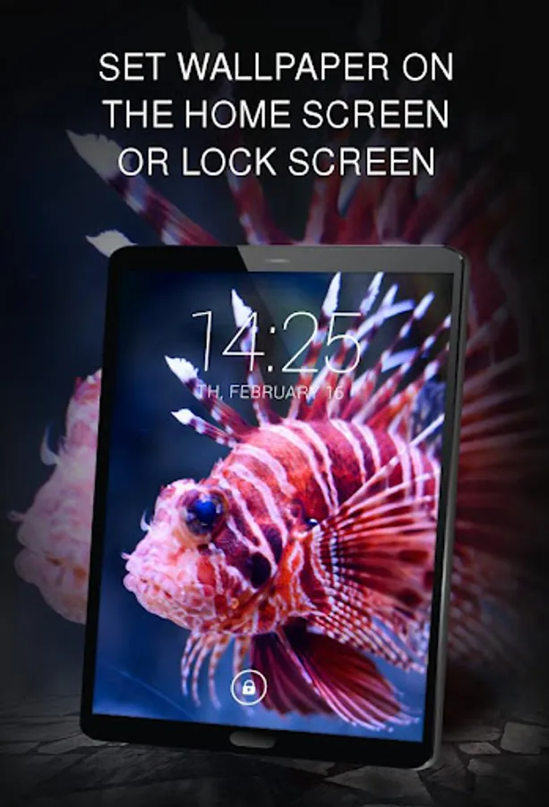 In addition, an application is available that allows you to display new wallpapers to be able to display the next large wallpapers and set fish pictures on the screen, which they most like. Notifications are also a guarantee that nobody is updated in the database and messages. The fish background can be customized to your smartphone's lock screen, changed and customized.