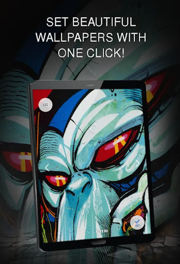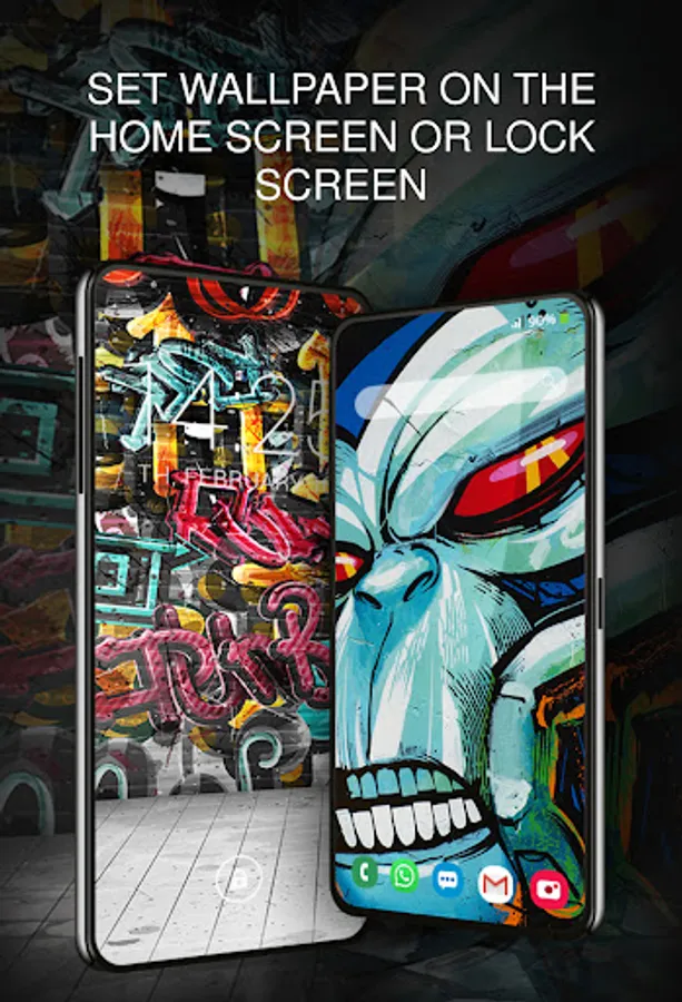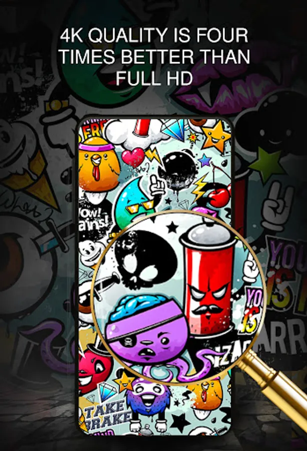 In addition, the application sends users notifications about the availability of new wallpapers so that they can view the next great wallpapers and set graffiti photos on the screen that they like the most. Notifications are also a guarantee that nobody will miss the database update and available messages. graffiti background can be customized on the smartphone's lock screen, changed and customized.