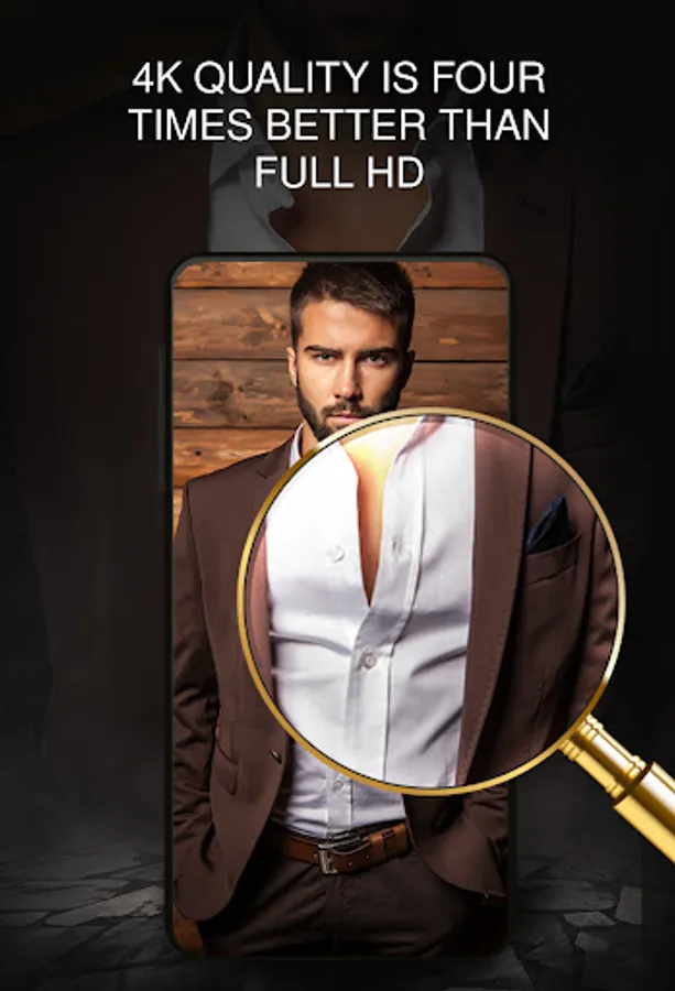 In addition, the application sends users notifications about the availability of new wallpapers so that they can view the next great wallpapers and set men's pictures on the screen that they like the most. Notifications are also a guarantee that nobody will miss the database update and available messages. The male background can be customized on the smartphone's lock screen, changed and adapted to your own taste.