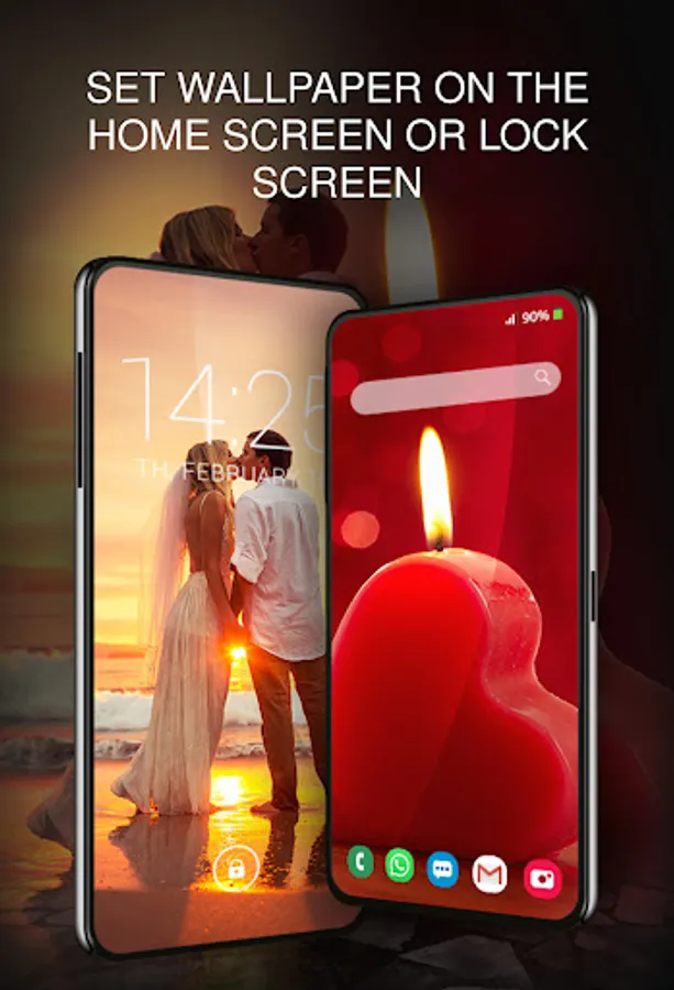 The application containing a database of romantic wallpapers for the phone and screen locks was created for Android smartphones. Romantic backgrounds are compatible with the most popular brands - LG, Nokia, Samsung, Sony Xperia, Xiaomi. They can also be used as wallpapers and lock screens on Alcatel, HTC, Lenovo, Motorola and many other devices.