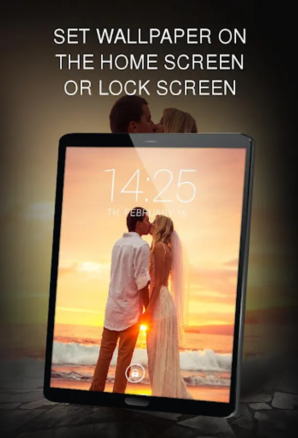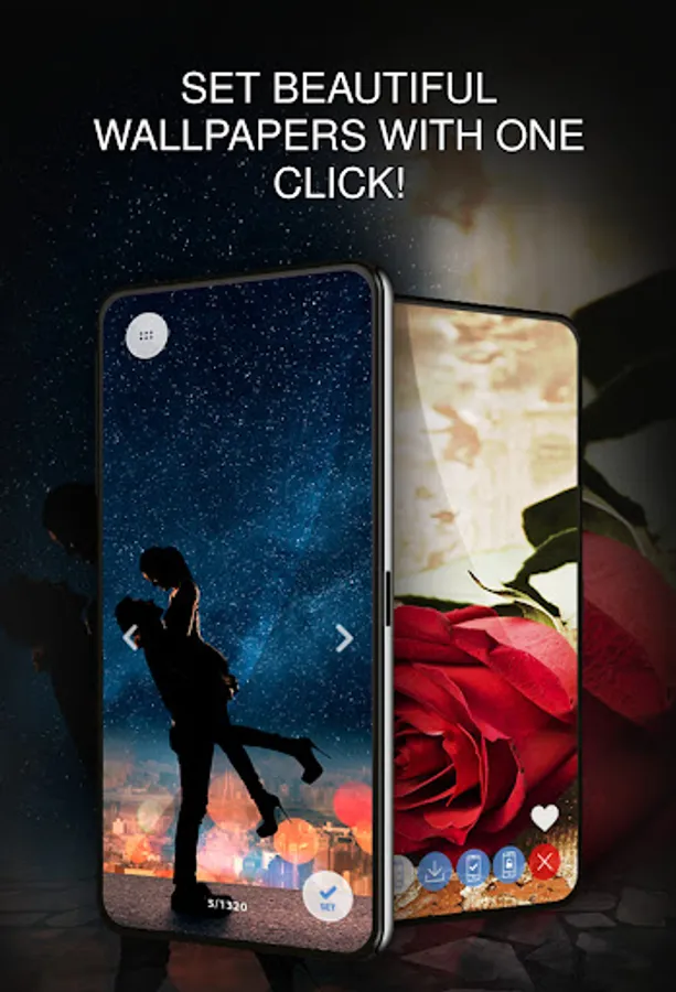 One step will allow you to create a stylish image from romance on the screen of a smartphone, tablet or set a screen lock from romance on the same devices. Find your favorite wallpaper, click "Set on screen" and the application will do everything for you! Our system of automatic matching wallpaper to the phone. The application will recognize and automatically adjust the wallpaper image to the screen resolution.