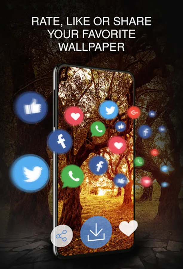 - Shares selected backgrounds with friends using social media accounts, MMS or email