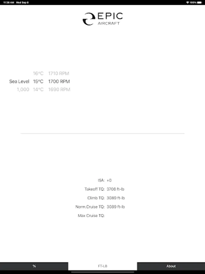 MyE1000 provides operational data (torque tables, etc.) to pilots flying the Epic E1000 airplane.