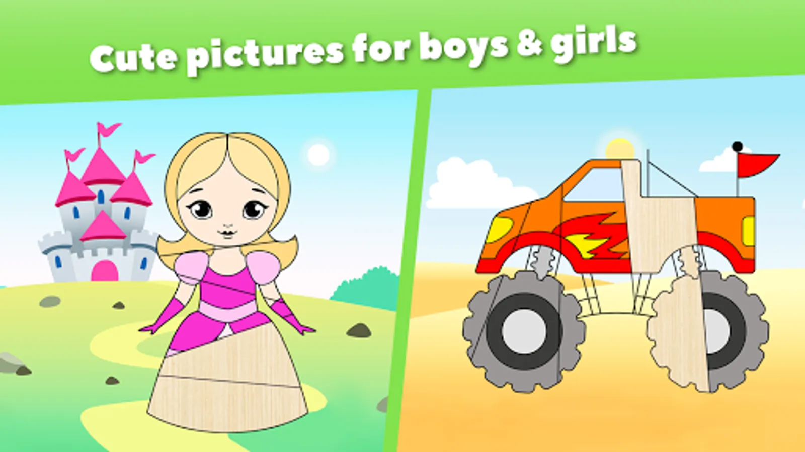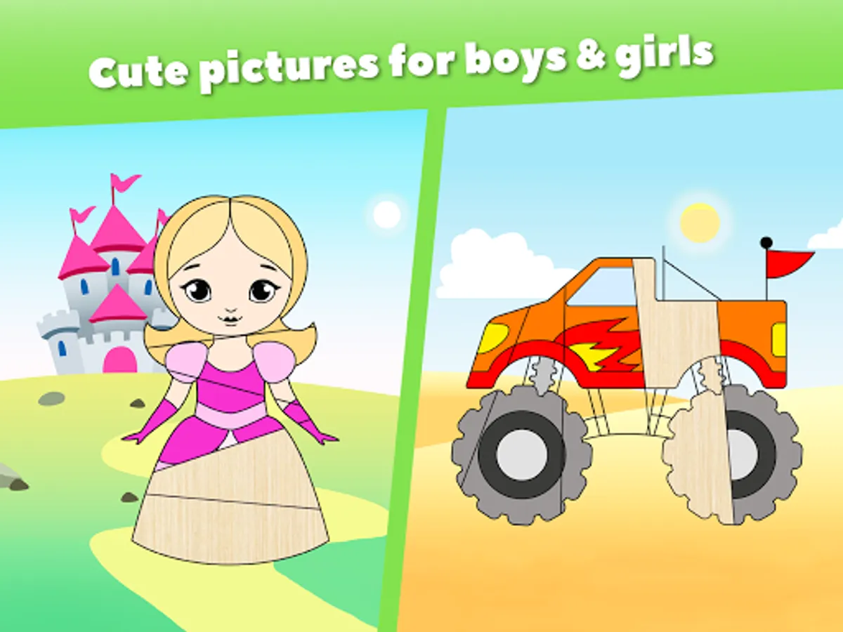 Additionally, there are categories that girls and boys like the most - princess and car puzzles. Our Toddler Matching Game for kids are ads free and safe.