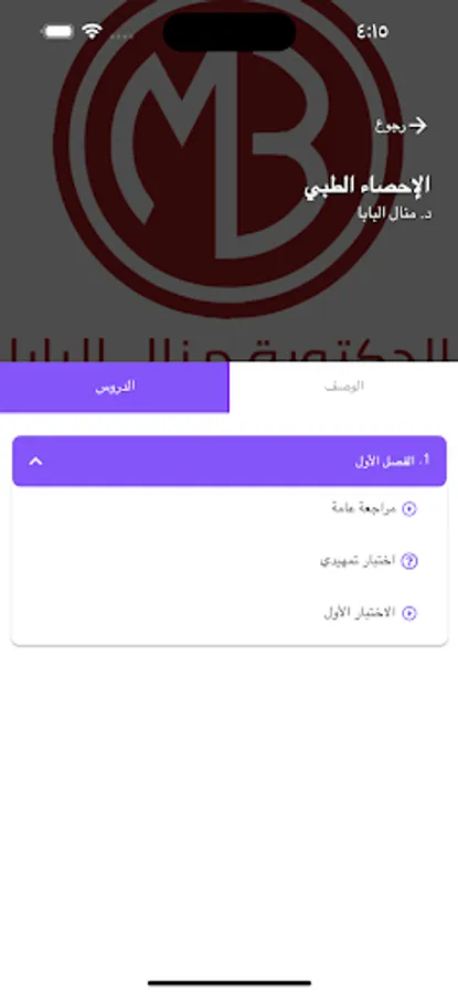 Dr. Manal Al-Baba's application offers a variety of various courses in medical statistics, in addition to important tests and worksheets.