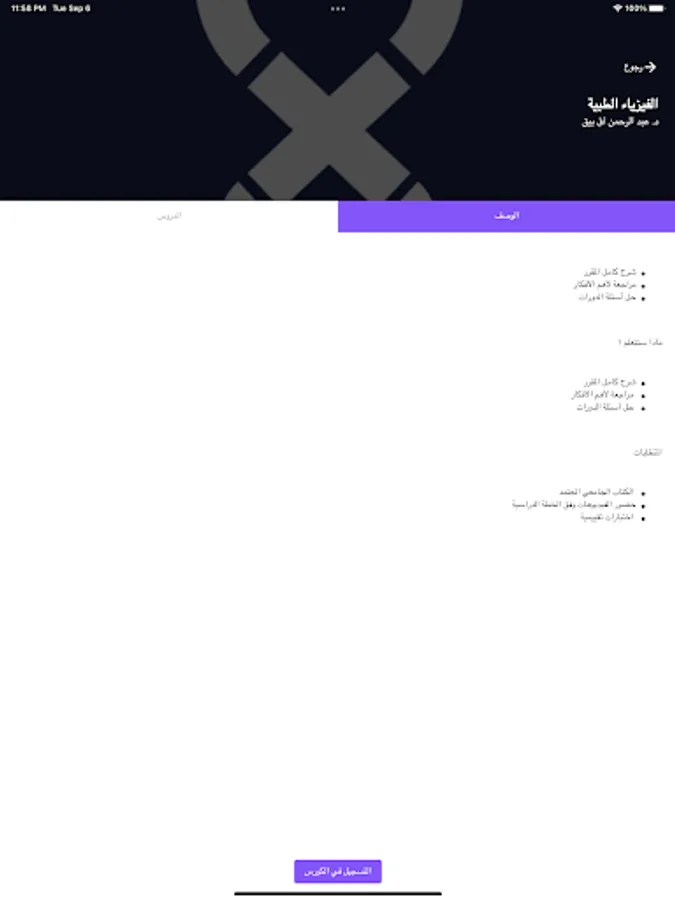 Our application provides distinguished and comprehensive educational explanations for many medical materials in an interactive manner in Arabic, in addition to many tests and auxiliary files