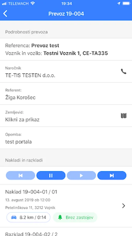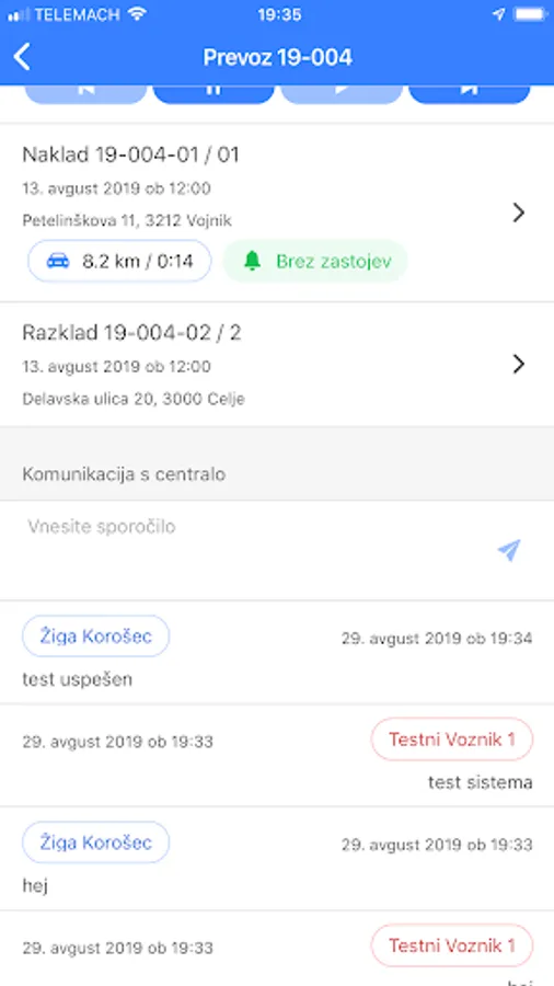The mobile application is part of the system for exchange between partners in the company Transport Pušnik, doo