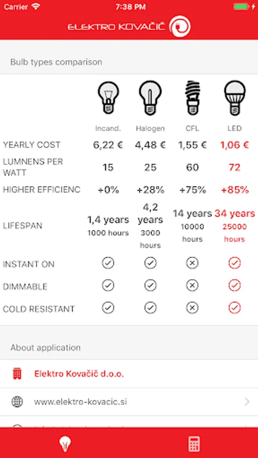 The last step in the app is directly connected with the company Elektro Kovačič d.o.o., which enables a simple and reasonably priced replacement of existing bulbs with LED bulbs.