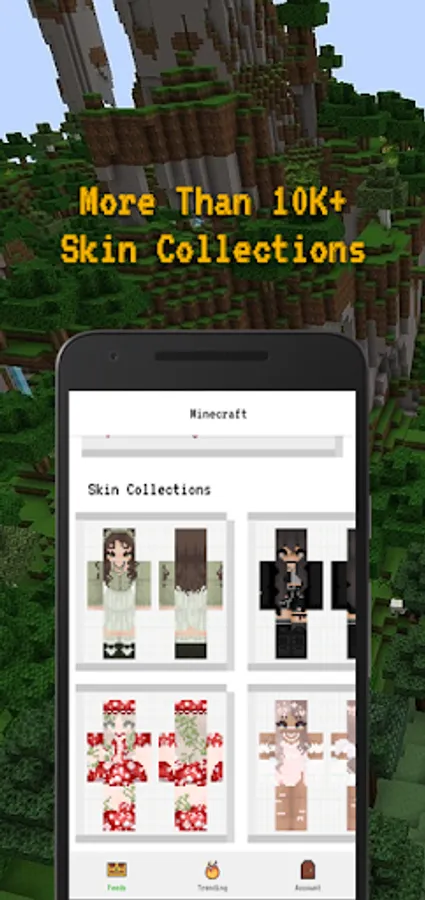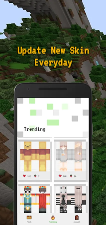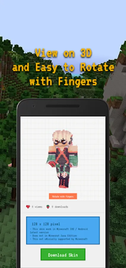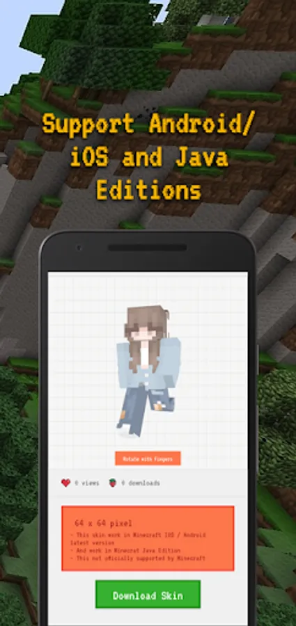 Find your favorite Minecraft skins character. Works with IOS/Android and both Minecraft Pocket Edition or PC/Mac version.