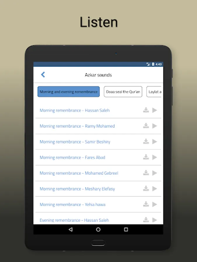 • Muslim daily azkars text & sound including morning , evening , sleep and many more.