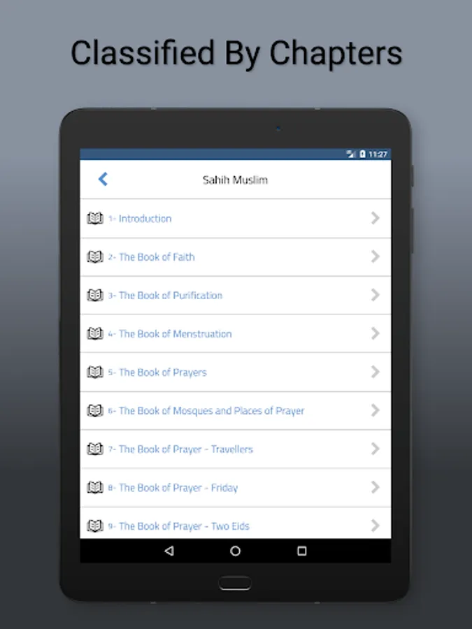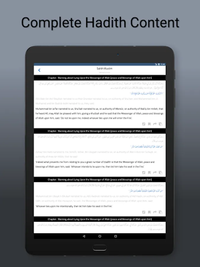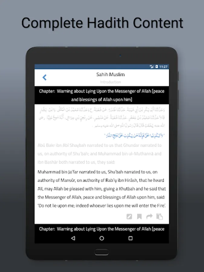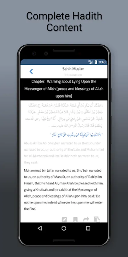 • Ability to add notes & bookmarks for a specific hadith.