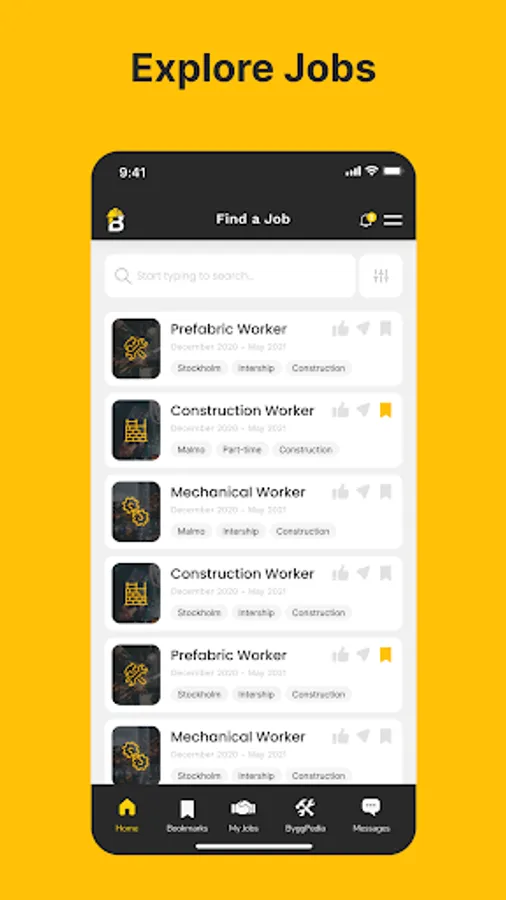 ● An extensive list of job openings — Your local job market may not be offering enough employment opportunities. With ByggJobs you gain access to the list of available jobs across several countries in the European Union. All you need to do is take your pick and apply.