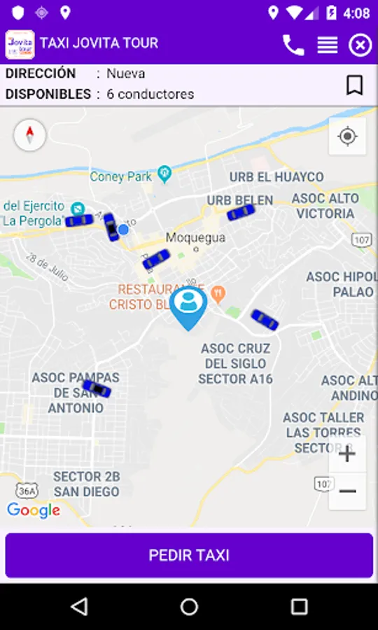 3.- While waiting for the taxi, you can visualize the movement of the vehicle.