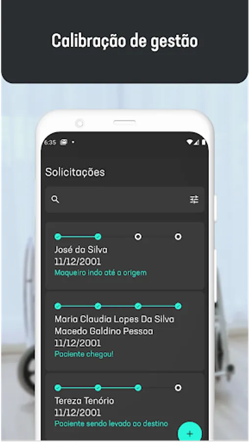 The team responsible for carrying out the transport requests is able to follow all the steps, specifying the patient's degree of risk, among other essential information for completing the task.
