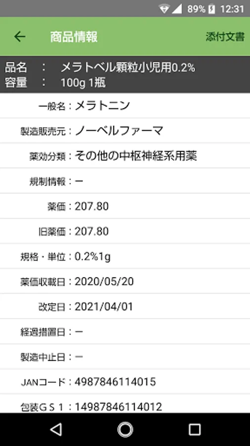 You can refer to basic drug information such as "generic name", "therapeutic classification", "drug price", and "various codes".