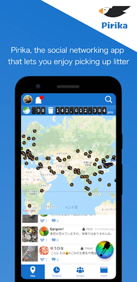 Pirika was created in 2011 by students from Kyoto University secretly, using the equipment in the university to develop the app. When they started their service, they were frequently laughed at - "who will use such a service?" - but the app has grown to be used in over 111 countries, with more than 210,000,000 pieces of litter having been picked up.