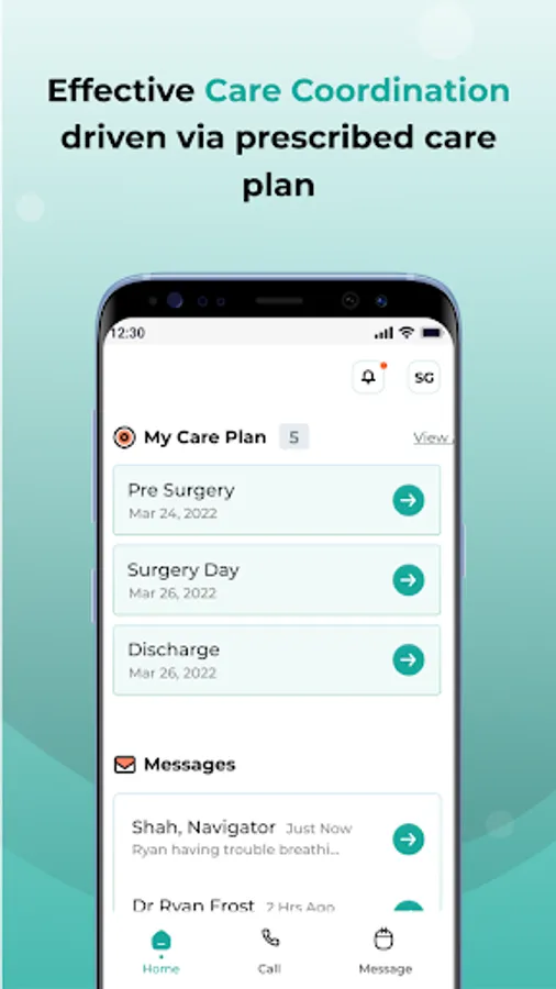 The ENavPatient app allows patients to message and call their care team, view health and surgery information, and see upcoming appointment locations and details.