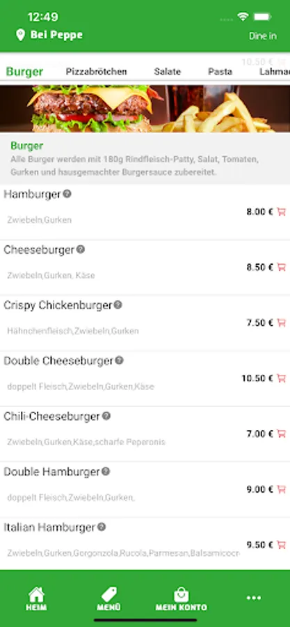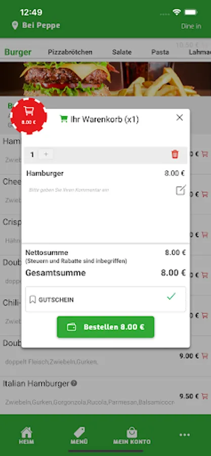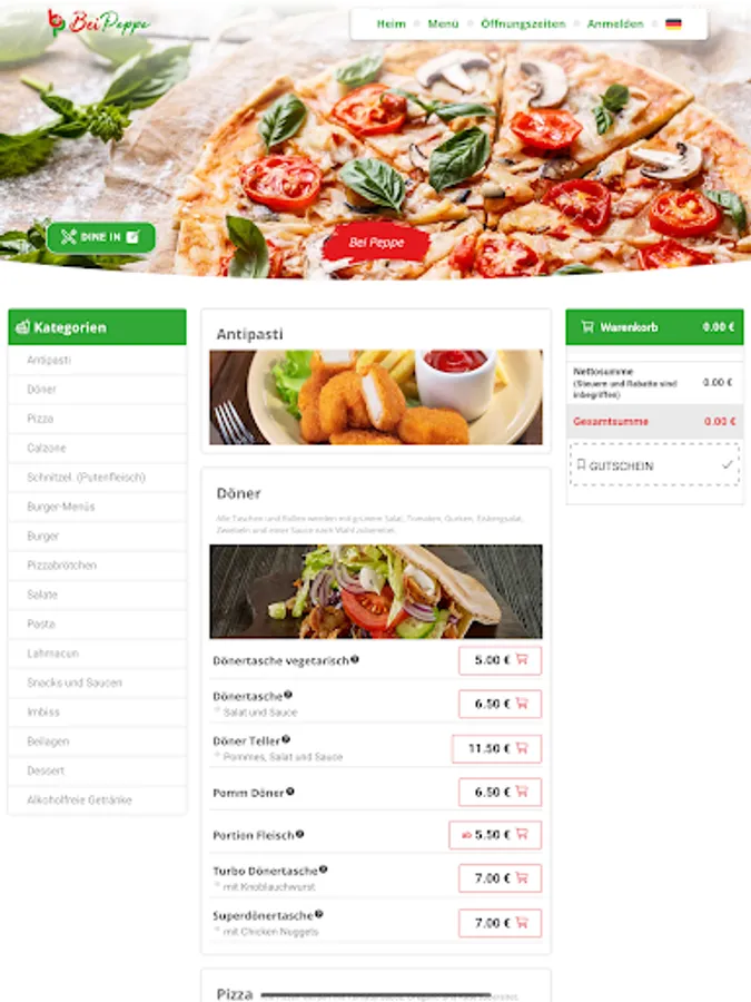 Welcome to Bei Peppe in Wuppertal. We serve our customers with doner kebabs, pizza, burgers, pasta and salads and have been doing it with passion for several years. We are always happy to bring new customers closer to our origins and would like to give them the opportunity to place their order in an uncomplicated and totally simple manner. For this reason, we would like to introduce you to our new app and our online shop, with which you can easily pay via Paypal, cash and credit card.