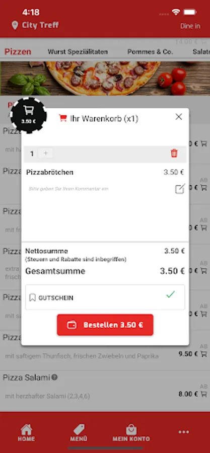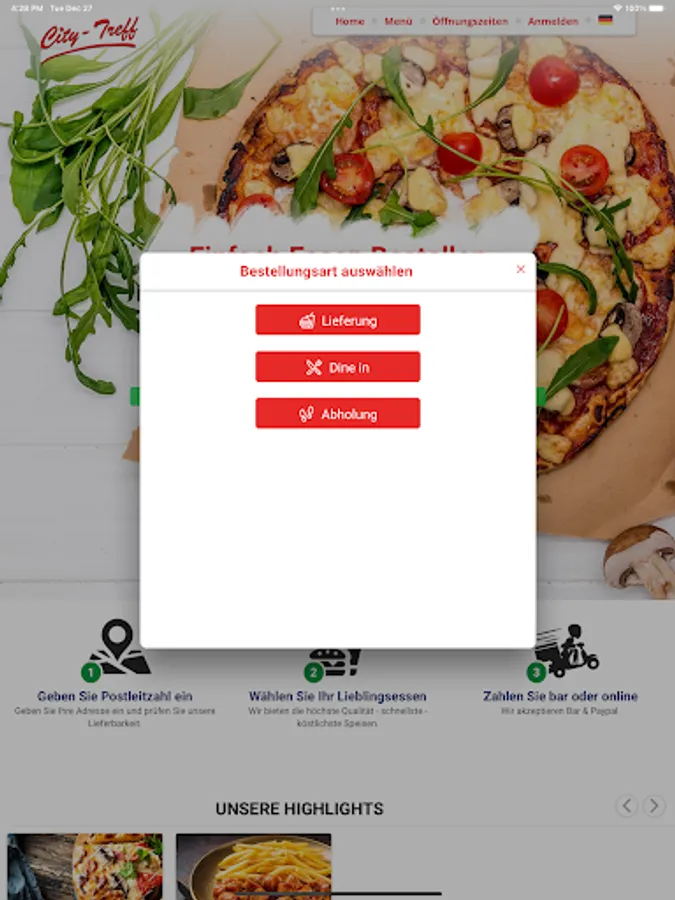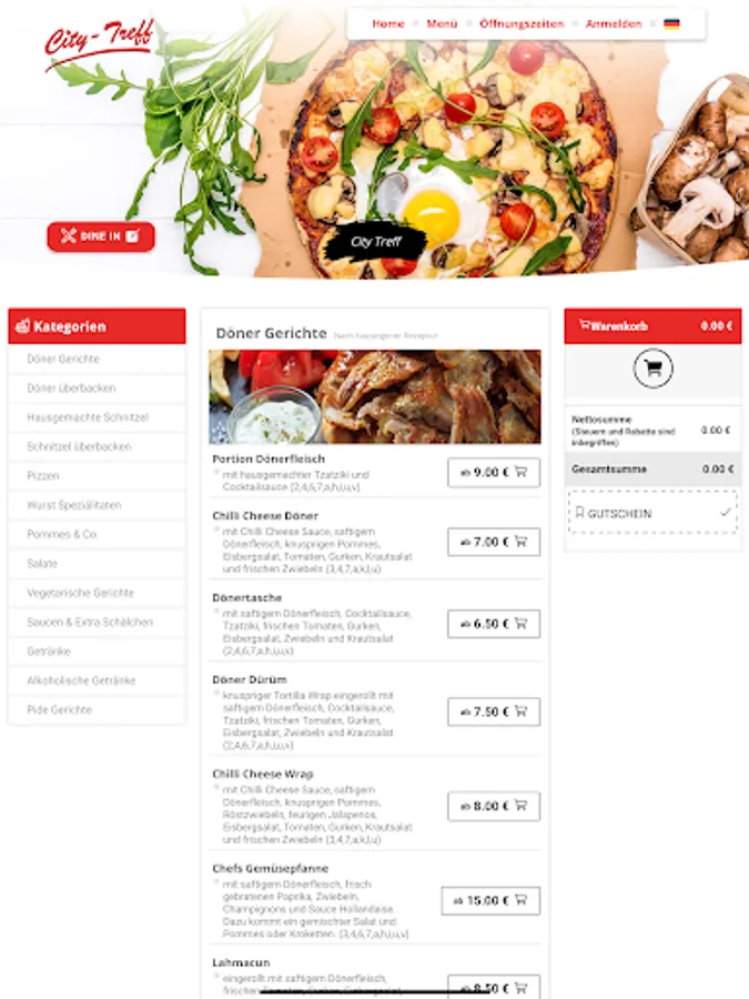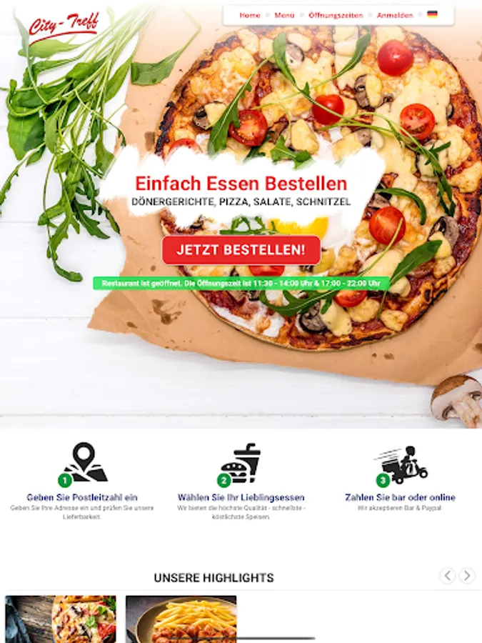 Welcome to City Treff Linnich in Linnich. We serve our customers with kebab dishes, pizza, salads, schnitzel dishes and have been doing it with passion for several years. We are always happy to bring new customers closer to our origins and would like to give them the opportunity to place their order in an uncomplicated and totally simple manner. For this reason, we would like to introduce you to our new app and our online shop, with which you can easily pay via Paypal, cash and credit card.