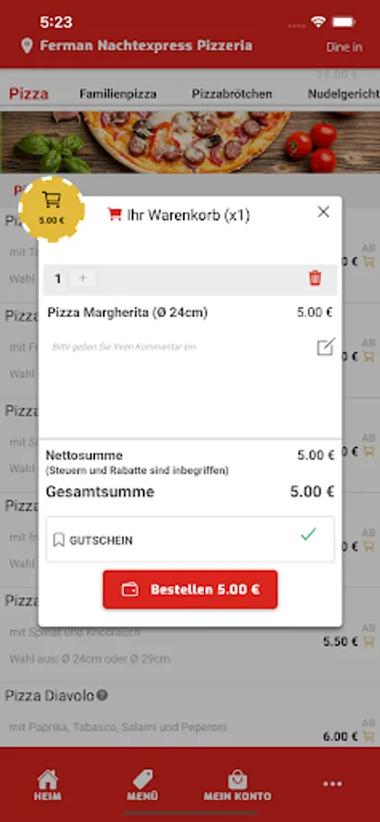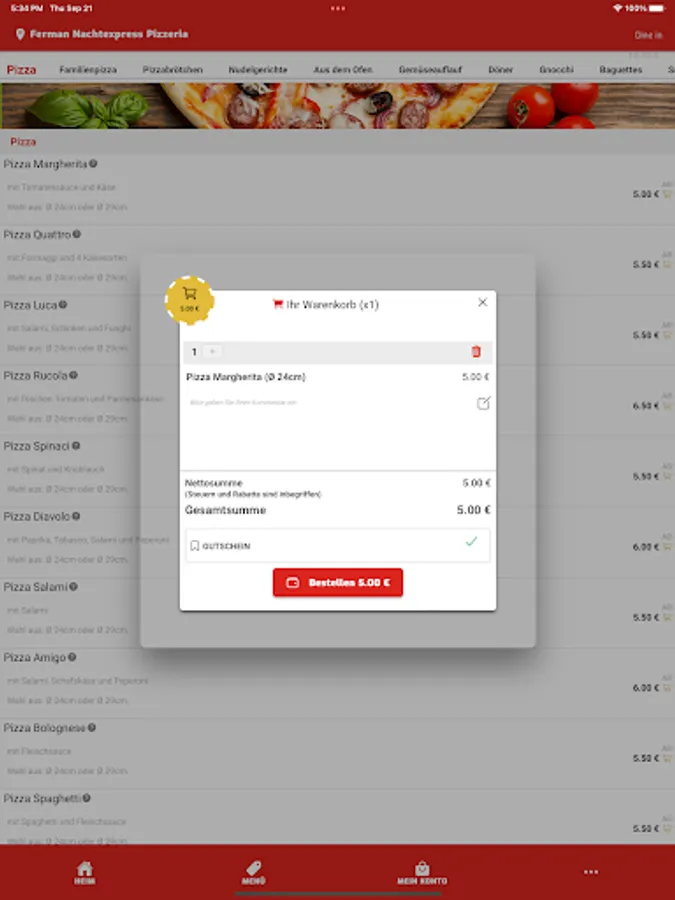 Welcome to Ferman Nachtexpress Pizzeria in Wuppertal. We serve our customers with Italian pizzas, salads and pasta dishes and have been doing this with passion for several years. We are always happy to introduce new customers to our origins and would like to give them the opportunity to place their order in a straightforward and totally easy way. For this reason, we would like to introduce you to our new app and our online shop, with which you can easily pay via Paypal, cash and credit card.