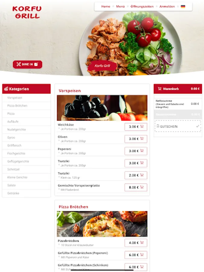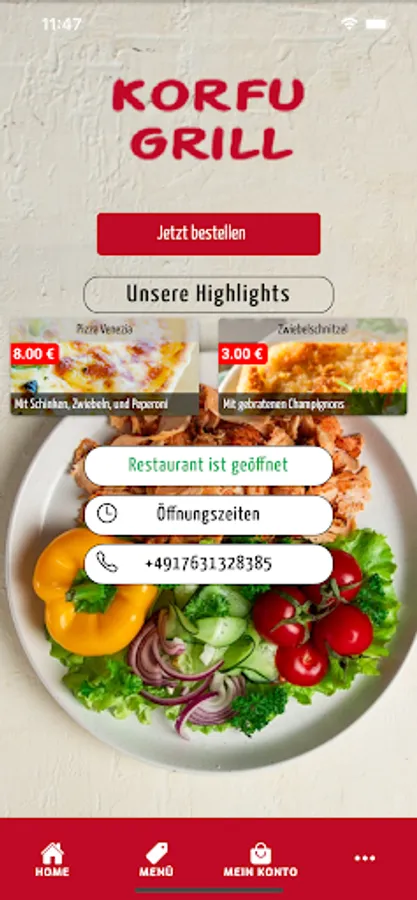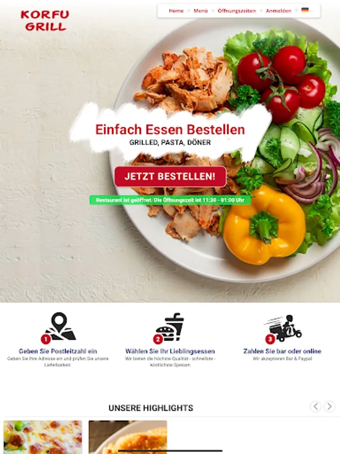 Welcome to Corfu Grill in Alsdorf. We serve our customers with grilled, pasta and kebab dishes and have been doing it with passion for several years. We are always happy to bring new customers closer to our origins and would like to give them the opportunity to place their order in an uncomplicated and totally simple manner. For this reason, we would like to introduce you to our new app and our online shop, with which you can easily pay via Paypal, cash and credit card.