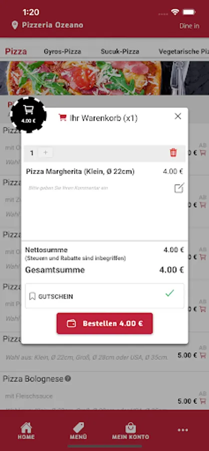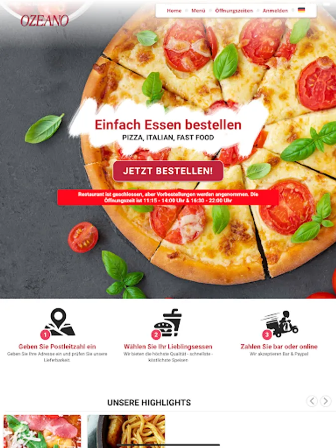 Welcome to Ozeano in Oberhausen. We serve our customers with pizza, Italian, fast food and have been doing it with passion for several years. We are always happy to bring new customers closer to our origins and would like to give them the opportunity to place their order in an uncomplicated and totally simple manner. For this reason, we would like to introduce you to our new app and our online shop, with which you can easily pay via Paypal, cash and credit card.
