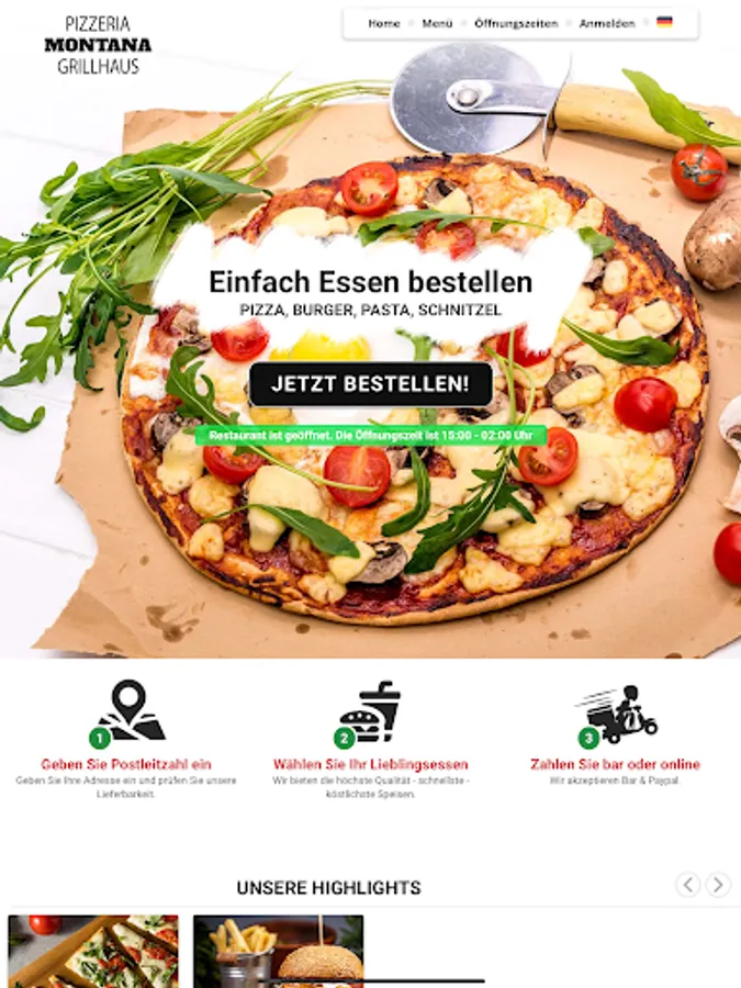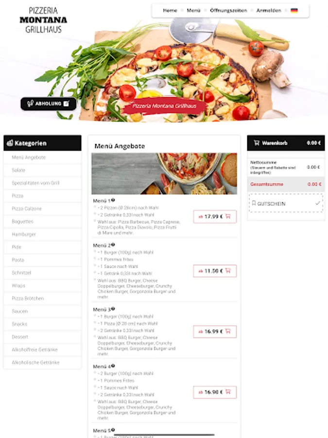 Welcome to Pizzeria Montana Grillhaus in Aachen. We serve our customers with pizza, biryani, butter chicken, samosa dishes and have been doing it with passion for several years. We are always happy to bring new customers closer to our origins and would like to give them the opportunity to place their order in an uncomplicated and totally simple manner. For this reason, we would like to introduce you to our new app and our online shop, with which you can easily pay via Paypal, cash and credit card.