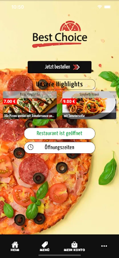 Welcome to “Best Choice” in “Usingen”. We serve our customers with Italian pizzas, salads and pasta dishes and have been doing this with passion for several years. We are always happy to introduce new customers to our origins and would like to give them the opportunity to place their order in a straightforward and totally easy way. For this reason, we would like to introduce you to our new app and our online shop, with which you can easily pay via Paypal, cash and credit card.