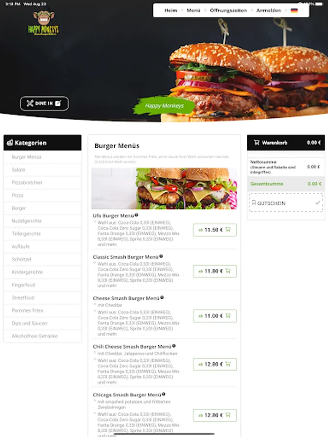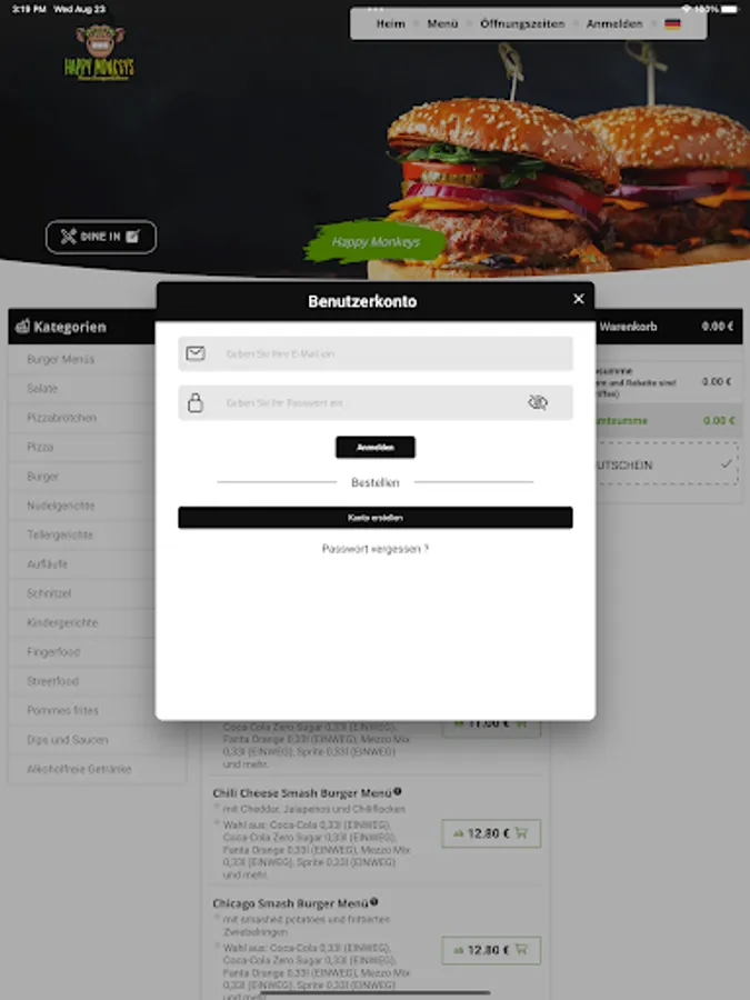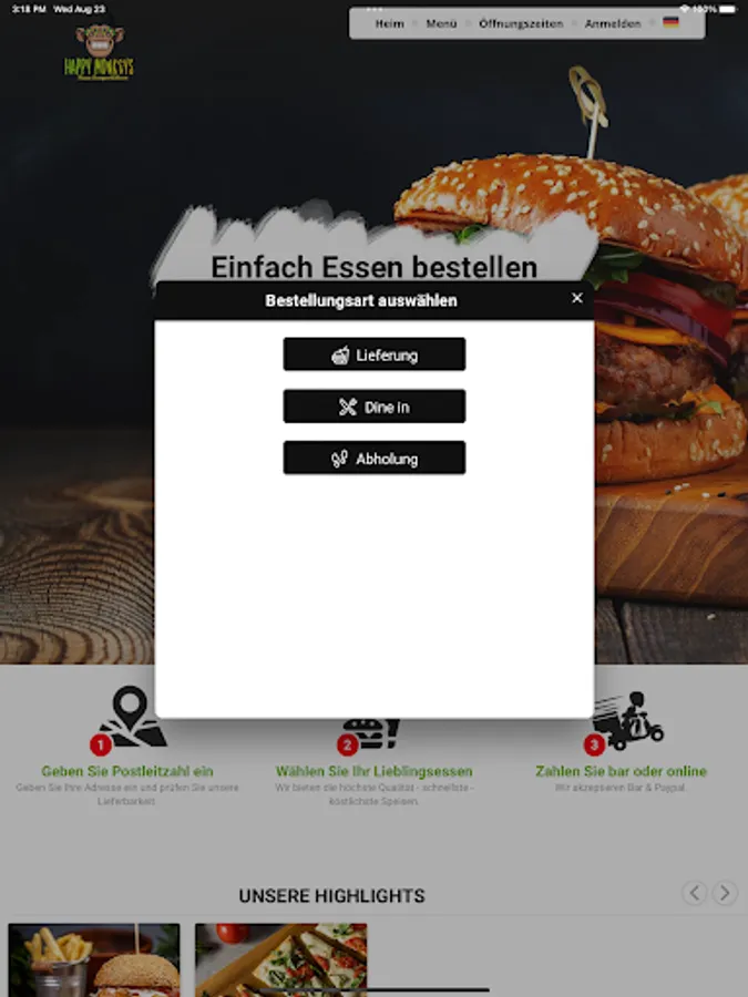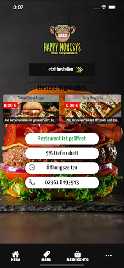 Welcome to Happy Monkeys in Recklinghausen. We serve our customers with burgers, pizza, pasta dishes, street food and have been doing it with passion for several years. We are always happy to bring new customers closer to our origins and would like to give them the opportunity to place their order in an uncomplicated and totally simple manner. For this reason, we would like to introduce you to our new app and our online shop, with which you can easily pay via Paypal, cash and credit card.