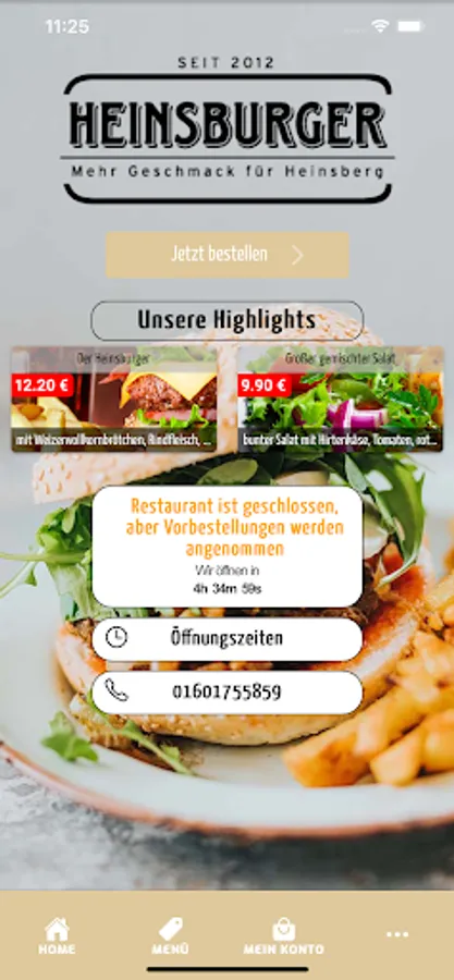 Welcome to HeinsBurger in Heinsberg. We serve our customers with burgers, fries, snacks and have been doing it with passion for several years. We are always happy to bring new customers closer to our origins and would like to give them the opportunity to place their order in an uncomplicated and totally simple manner. For this reason, we would like to introduce you to our new app and our online shop, with which you can easily pay via Paypal, cash and credit card.