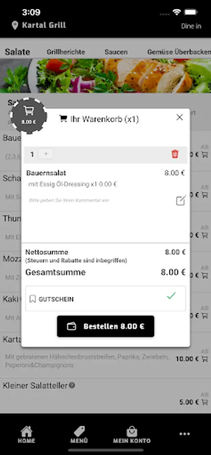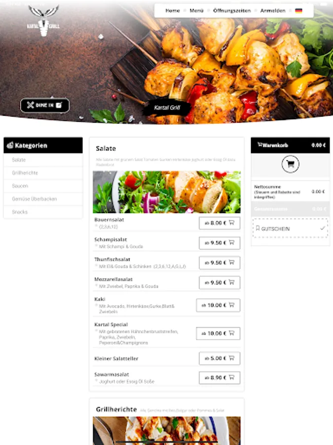 Welcome to Kartal Grill in Eschweiler. We serve our customers with grilled, pasta and snacks and have been doing it with passion for several years. We are always happy to bring new customers closer to our origins and would like to give them the opportunity to place their order in an uncomplicated and totally simple manner. For this reason, we would like to introduce you to our new app and our online shop, with which you can easily pay via Paypal, cash and credit card.