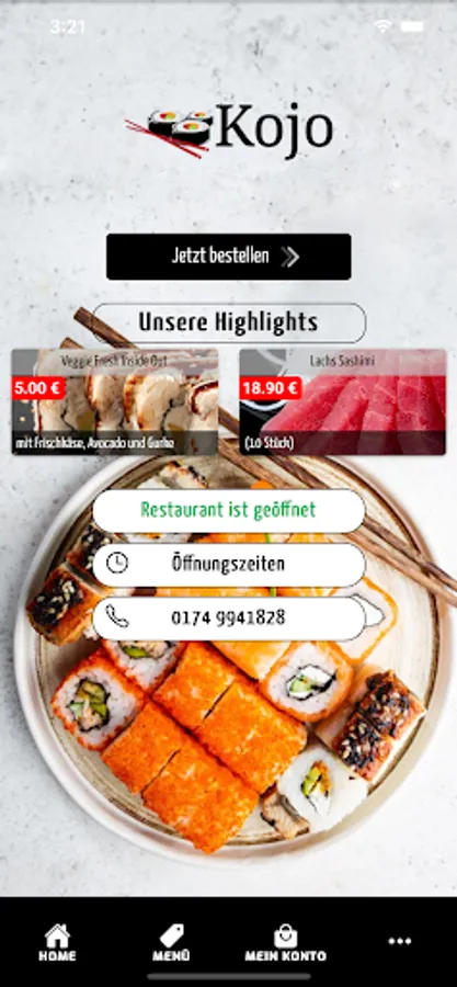 Welcome to Kojo Sushi in Aachen. We serve our customers with Japanese specialties and have been doing it with passion for several years. We are always happy to bring new customers closer to our origins and would like to give them the opportunity to place their order in an uncomplicated and totally simple manner. For this reason, we would like to introduce you to our new app and our online shop, with which you can easily pay via Paypal, cash and credit card.