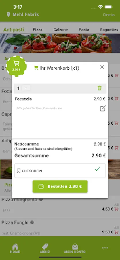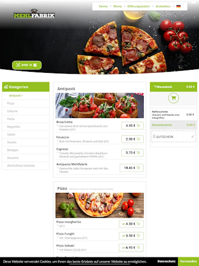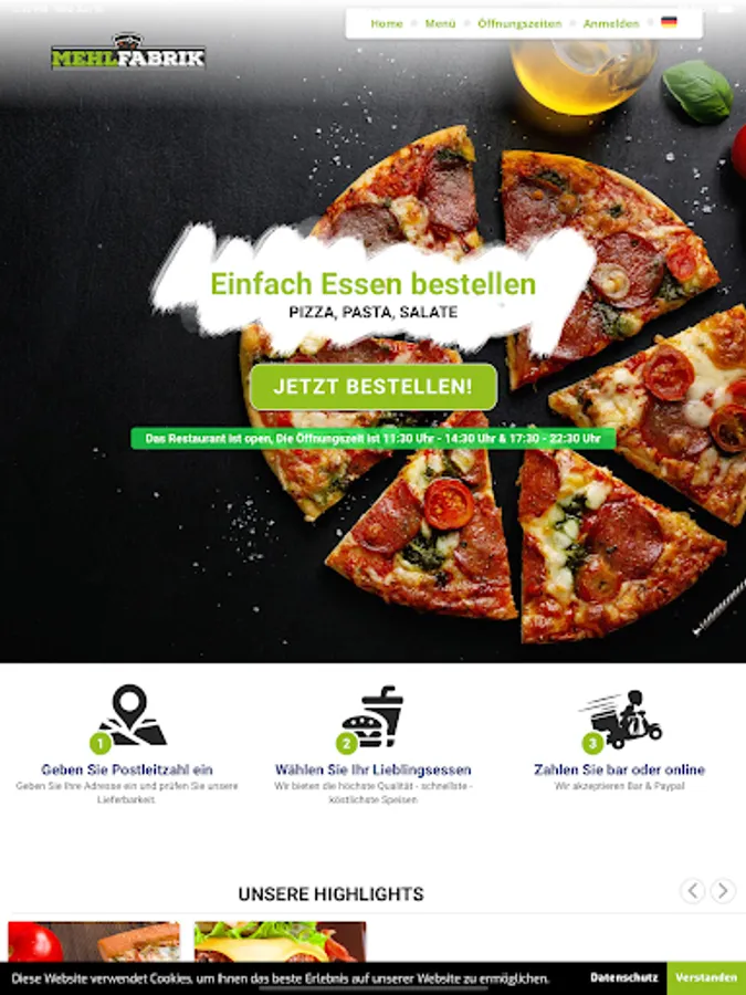 Welcome to Mehl Fabrik in Rotenburg. We serve our customers with pizza, pasta, salads and have been doing this with passion for several years. We are always happy to bring new customers closer to our origins and would like to give them the opportunity to place their order in an uncomplicated and very easy way. For this reason, we would like to introduce you to our new app and our online shop, with which you can easily pay via PayPal, cash and credit card.