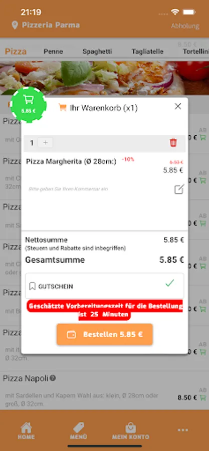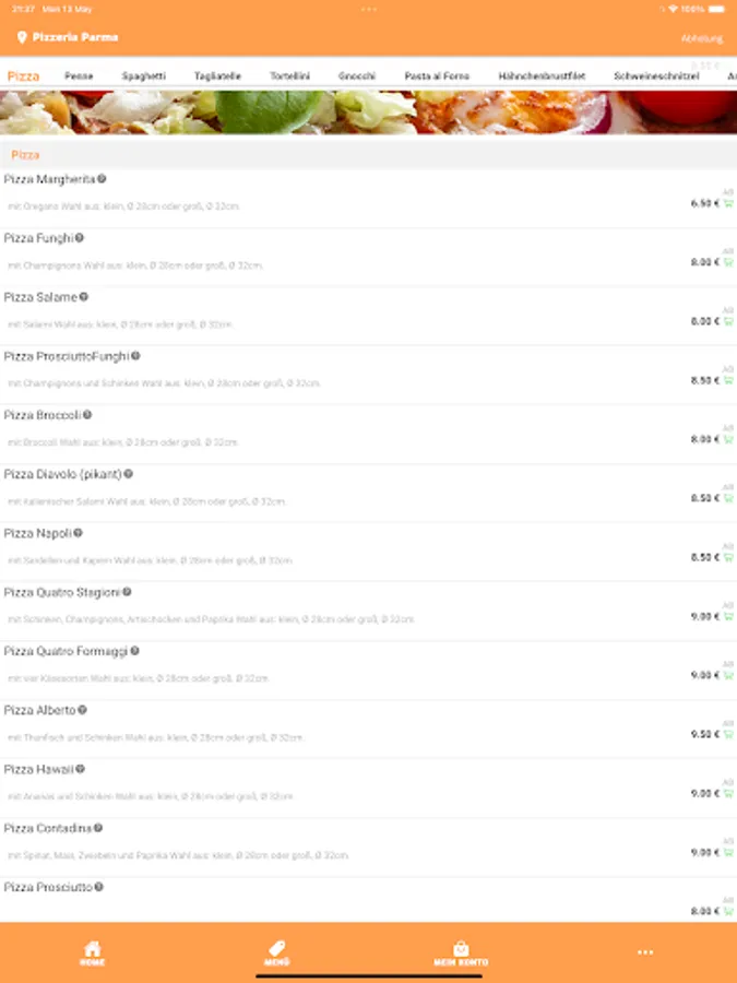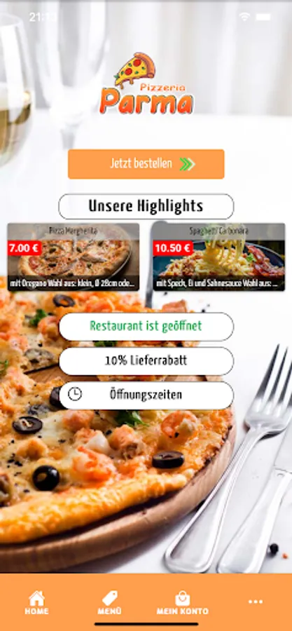 Welcome to Pizzeria Parma in Ruhr. We serve our customers with Italian pizzas, salads and pasta dishes and have been doing this with passion for several years. We are always happy to bring customers closer to our origins and would like to give them the opportunity to place their order in a straightforward and totally easy way. For this reason, we would like to introduce you to our app and our online shop, with which you can easily pay via Paypal, cash and credit card.