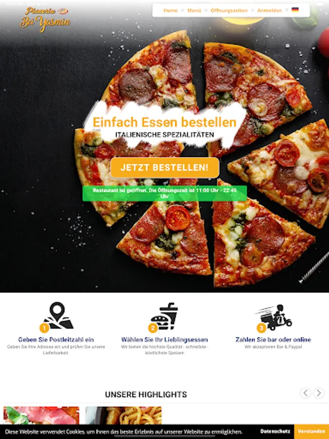 Pizzeria at Yasmin delivery service in Hilden order online pizza, pasta, Italian, Asian, Indian and Mexican food and much more to your home. Fast. Healthy. Delicious.