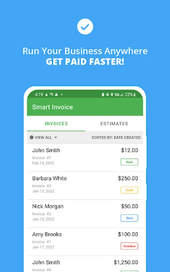 Are you tired of dealing with endless paperwork and making costly mistakes? Smart Invoice is here to revolutionize the way you handle invoicing for your business. With this powerful app, you can create, estimate, bill, and send professional invoices to your clients straight from your phone or tablet.