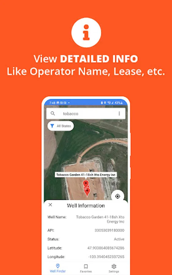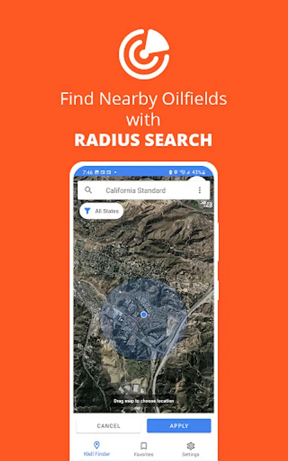 Our all-in-one app offers a range of features to make your oilfield exploration experience seamless and efficient. With a fast and intelligent search function, you can find oilfields by name or API number in seconds, and view nearby locations with just a few clicks by dragging and dropping a pin on our built-in map. You'll also have access to unlimited, free updates to our oilfield database in the cloud, so you always have the latest information. Plus, our topographic data allows you to view maps in normal, hybrid, satellite, and terrain mode, giving you a complete picture of the area you're exploring.