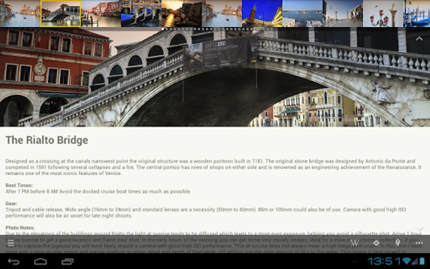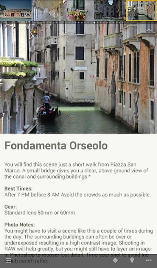 The Exposure Tours App has been designed to allow you to maximize your time in Venice by providing easy access to the best and most photogenic viewpoints and areas of interest.