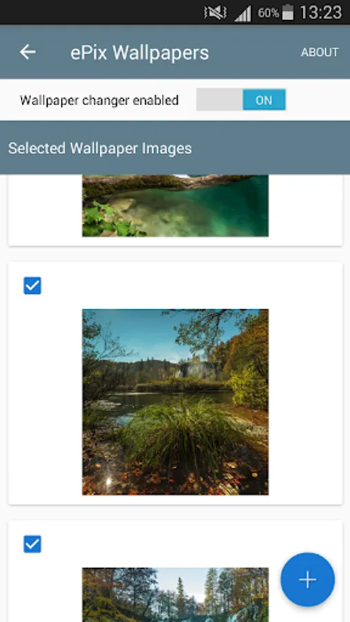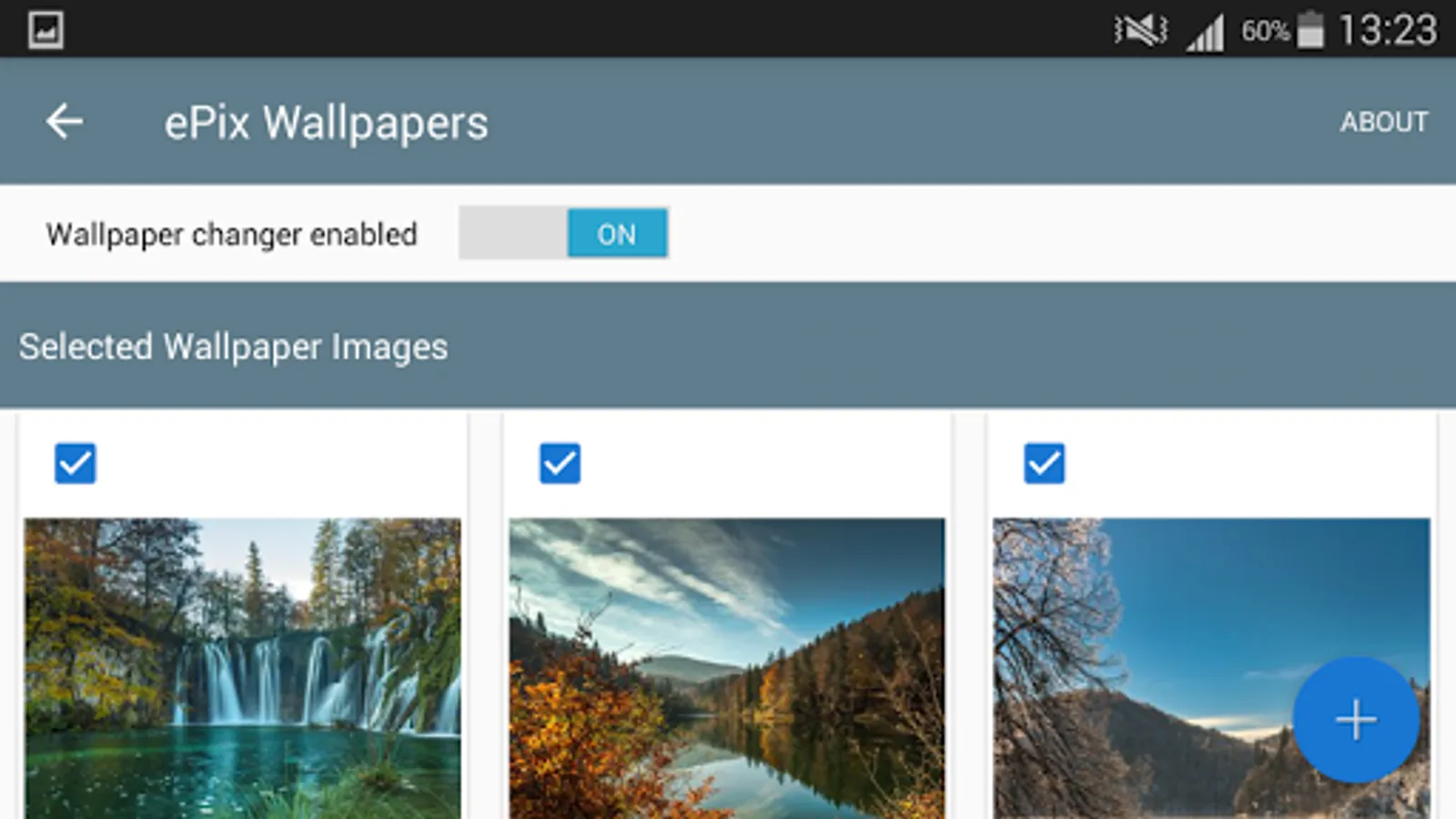 ePix Wallpapers is a live wallpaper tool that is replacing wallpaper images each time you turn on the device or exit from an app to the home screen. It can rotate your own images, those that you add from your camera gallery. Initial installation comes with a curated set of images that you can also use as wallpapers.
