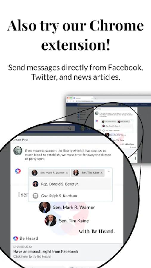 Also try our Chrome extension! It lets you send messages directly from Facebook, Twitter, and news sites. We have 5.0 stars on the Chrome web store.